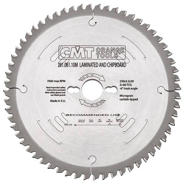 Даний пильний диск використовується на ручних і стаціонарних циркулярних пилах, горизонтальних або вертикальних форматно-розкрійних верстатах. Твердосплавні зуби мають форму трапеція-рівний та кут атаки -3°. Підходить для роботи з Дсп, ЛДсп, Мдф, ламінатом, фанерою, ламінованою фанерою, двосторонньо ламінованими покриттями в парі з підрізним диском. ЗАСТОСУВАННЯ: Розпил матеріалів з чистим різом без додаткової обробки. ОБЛАДНАННЯ: Ручні циркулярні пили, горизонтальний або вертикальний форматно-розкрійний верстат, стаціонарні циркулярні пили. МАТЕРІАЛ: Одно або двосторонньо ламіновані плити.