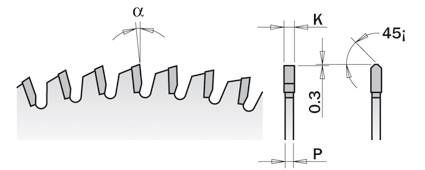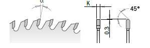 Основною особливістю є висока ударна в'язкість зубів зі спеціального сплаву. Негативний кут врізання -6° дозволяє контролювати процес пиляння і залишати гладкі акуратні краї заготовки без застрягання тонких деталей. Спеціальна конструкція пазух для ефективного видалення стружки.