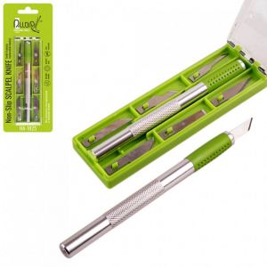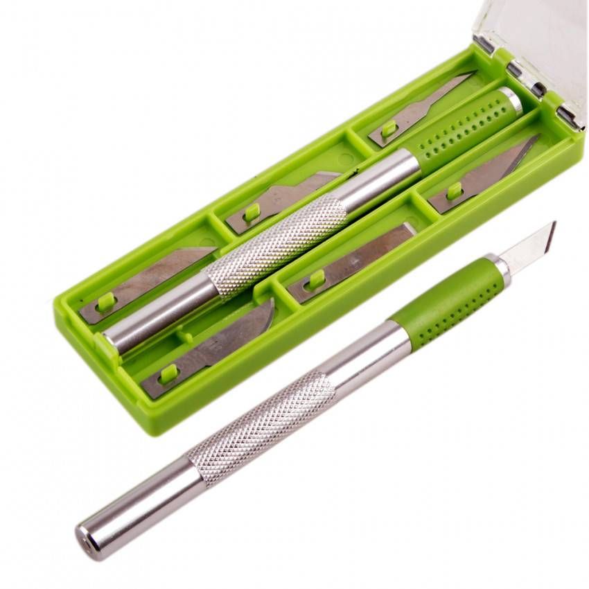 У комплекті зі скальпелем в невеликому пластиковому пеналі поставляється ще 6 змінних лез різної форми, такого запасу різноманітних лез досить для вирішення максимально широких завдань. Леза виконані з хірургічної сталі і мають лазерну заточку.