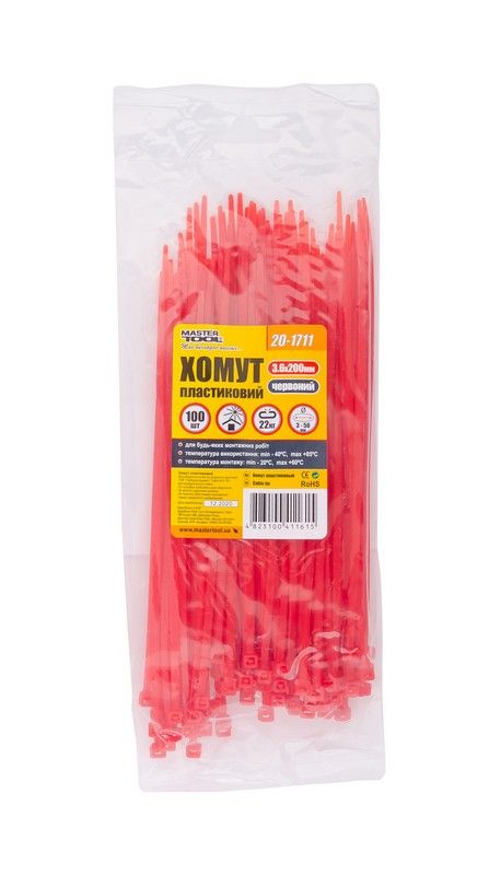 Хомут пластиковий MASTERTOOL 3.6х200 мм 100 шт червоний 20-1711