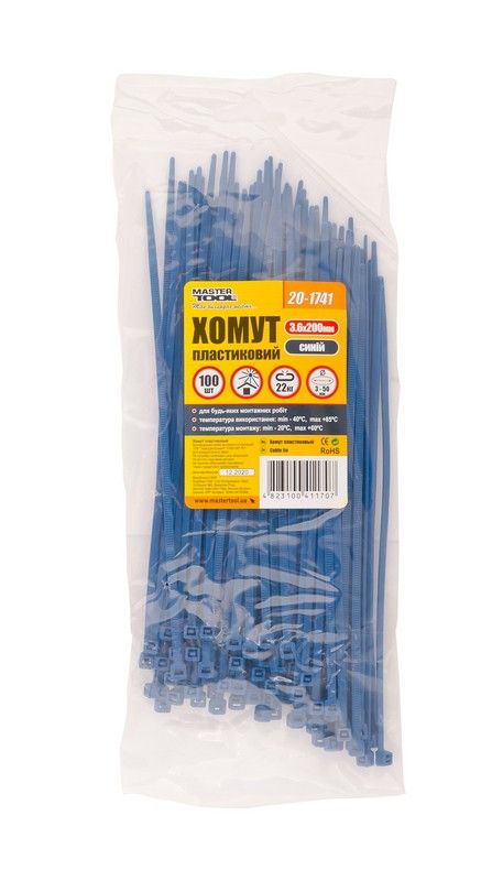 Хомут пластиковий MASTERTOOL 3.6х200 мм 100 шт синій 20-1741