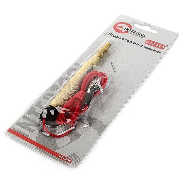Індикатор напруги Intertool VT-4009 призначений для перевірки наявності напруги в мережі, інструмент дозволяє тестувати електричні ланцюги з напругою живлення від 6 до 24 В, що робить його особливо корисним в автомобільному господарстві та для тесту проводки мотоциклів.