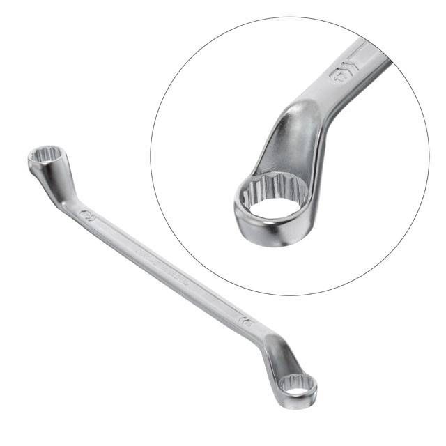 Дві накидні частини з дванадцятьма гранями збільшують площу прилягання поверхонь і знижують ризик зриву граней гайок та болтів. Робочі отвори розміщені під кутом до поверхонь, завдяки чому рука не зачіпляється та вільно обертає ключ.