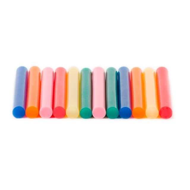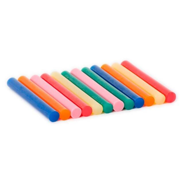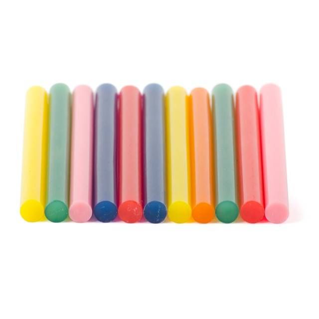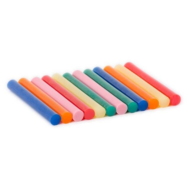 Клейові стрижні різних кольорів універсальні, підходять для різних завдань. Термоклей кольоровий: синій, зелений, оранжевий, червоний, жовтий, рожевий. В упаковці по 2 стержні кожного з кольорів. Діаметр стрижня 11,2 мм - один із найпоширеніших і найпопулярніших розмірів, підходить до будь-яких марок клейових пістолетів. Сам стрижень довжиною 100 мм, в упаковці - 12 штук.