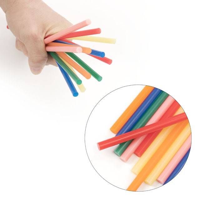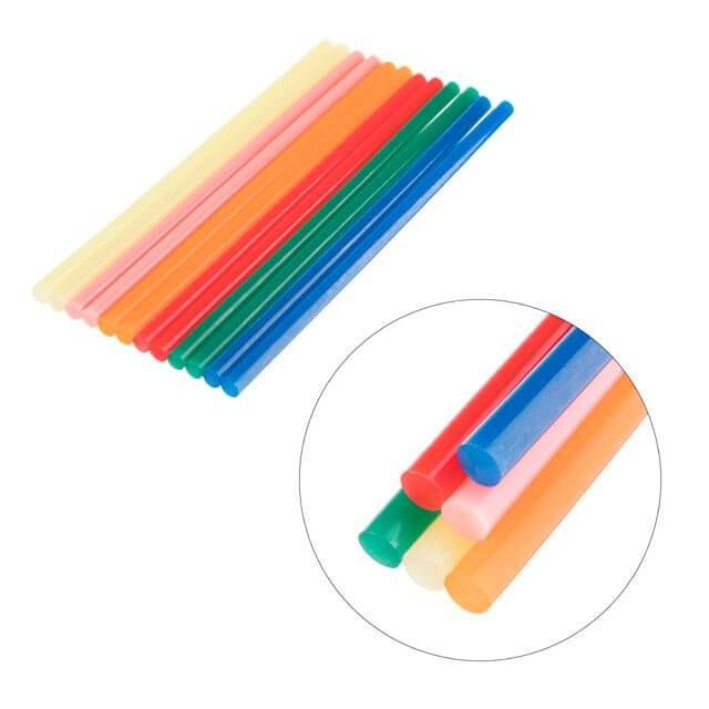 Клейові стрижні різних кольорів універсальні, підходять для різних завдань. Термоклей кольоровий: синій, зелений, оранжевий, червоний, жовтий, рожевий. В упаковці по 2 стрижні кожного з кольорів. Діаметр стрижня 11,2 мм - один із найпоширеніших і найпопулярніших розмірів, підходить до будь-яких марок клейових пістолетів. Сам стрижень довжиною 200 мм, в упаковці - 12 штук.