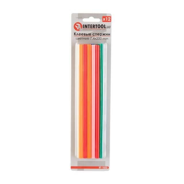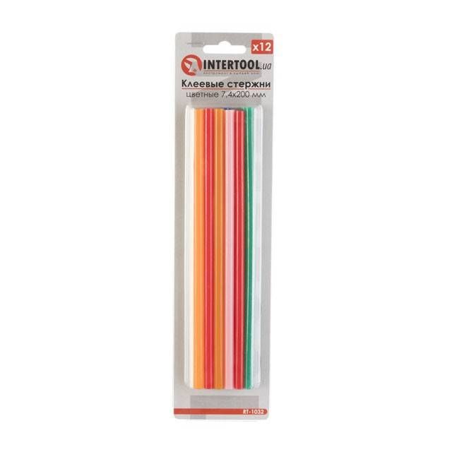 Комплект клейових стрижнів кольорових, 7,4×200 мм, 12 шт. INTERTOOL RT-1032