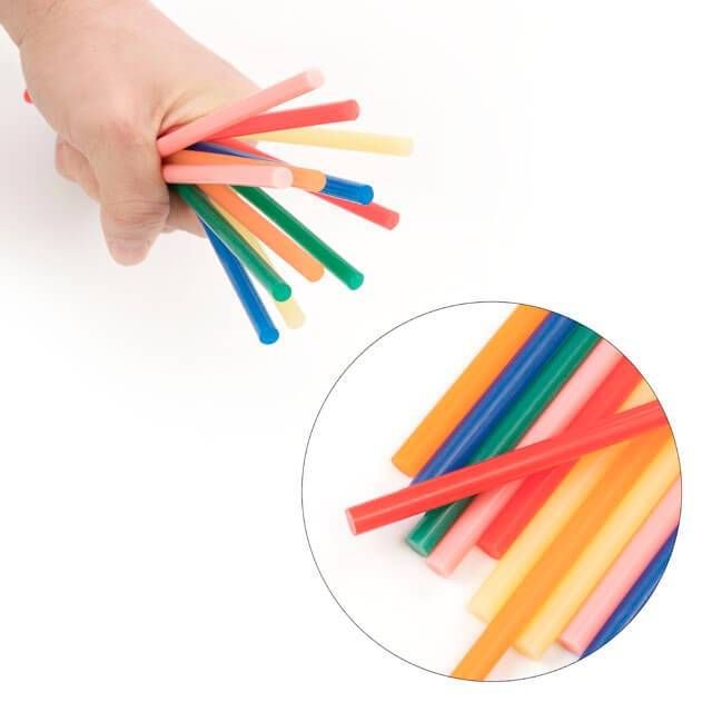 Стрижні виготовлені з високоякісної сировини марки Dupont. Такий термоклей складається з сополімеру Ева, він нетоксичний, не виділяє запаху та не містить розчинників. Високов'язкий клей дозволяє надійно скріплювати різні матеріали, твердішаючи в міру застигання через 30-40 секунд.