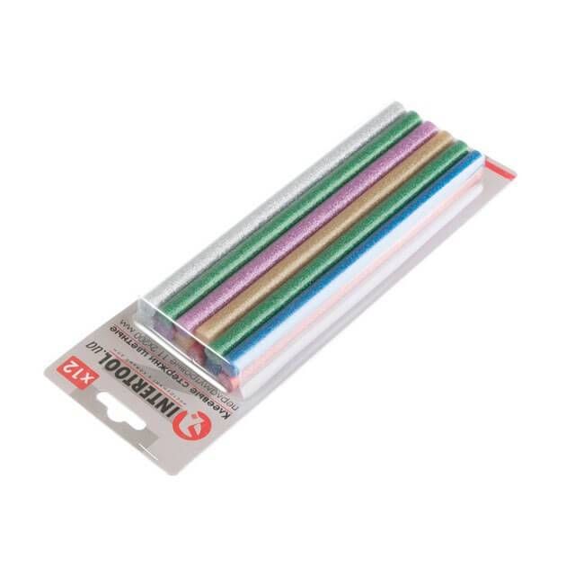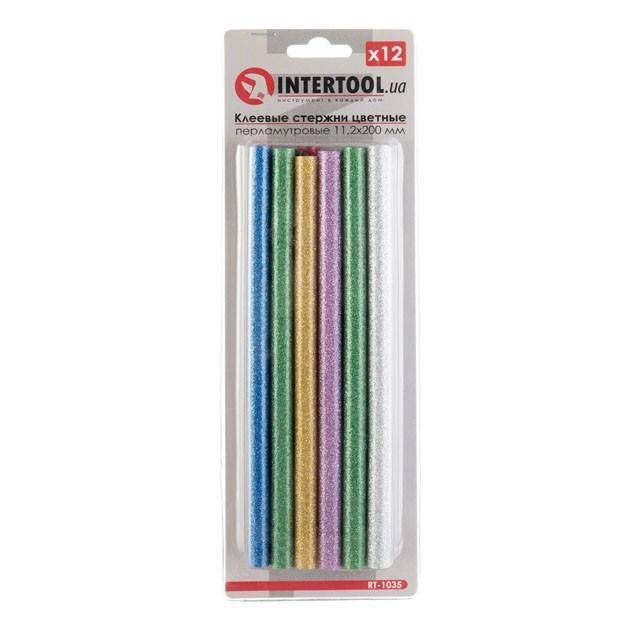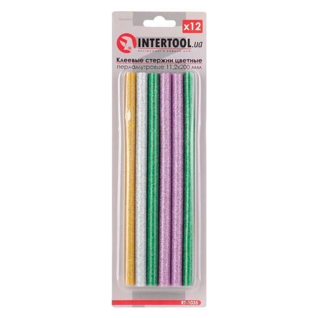 Комплект клейових стрижнів кольорових перламутрових, 11,2мм× 200 мм, 12 шт. INTERTOOL RT-1035