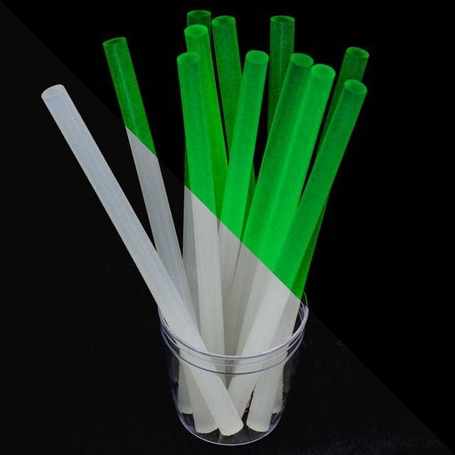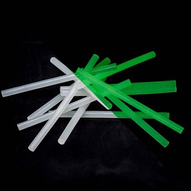 Флуоресцентні термоклейові стержні мають унікальну властивість, вони світяться в темряві зеленим світлом! Їх ще часто називають люмінесцентним клеєм.