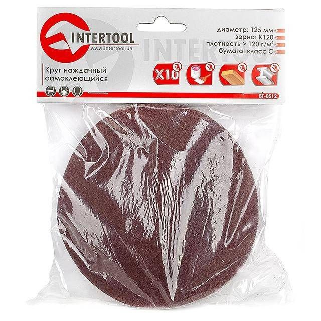 Круг наждаковий на липучці 125 мм, папір клас С, щільність 120 г/м², К120, 10 од. INTERTOOL BT-0512