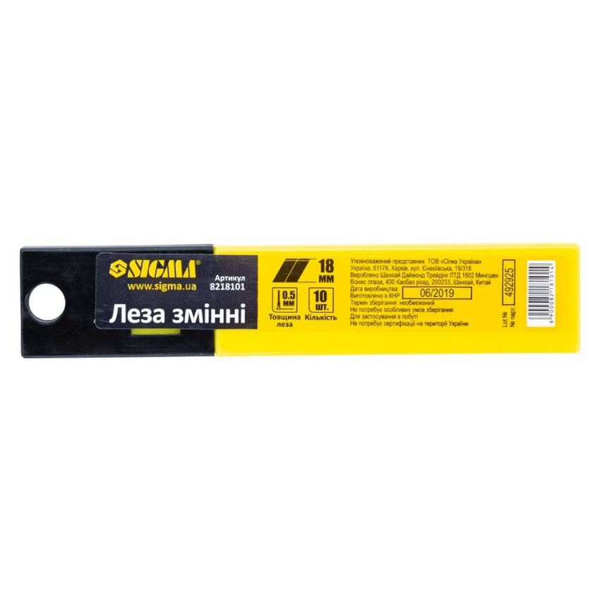 Леза змінні (прямі) 18мм 10шт Sigma (8218101)