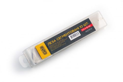 Лезвия используются для строительных ножей. Это запасные лезвия с 7-ю отламывающимися сегментами шириной 18 мм. Сфера использования - ремонтные работы, порезка обоев, картона, пленок и другие хозяйственно-бытовые задачи. Материал лезвия - прочная инструментальная сталь, котороя имеет высокий показатель износостойкостью. В комплекте 10 штук.