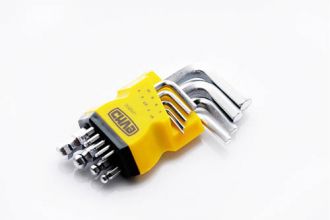 Код: 042579; Длина: 180; Ширина: 100; Высота: 30; Упаковка: 72; Страна: Китай; Вес: 0.27778; Гарантійний термін: не передбачено виробником; Матеріал: хром-ванадієва сталь; Набір: 1.5 мм, 2 мм, 2.5 мм, 3 мм, 4 мм, 5 мм, 6 мм, 8 мм, 10 мм; Найменування для ІМ Укр: Набір шестигранників 1,5, 2, 2,5, 3, 4, 5, 6, 8, 10 коротких з кульовим наконечником CrV (9шт) СИЛА;