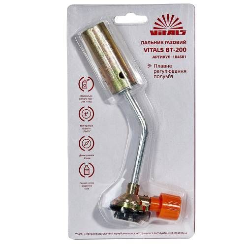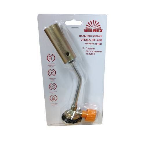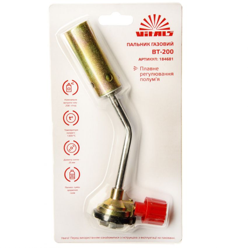 Пальник газовий Ø25 мм Vitals BT-200 призначений для розпалювання багать та мангалів, хобі та моделювання, паяння з'єднань труб, видалення фарби, розігріву замерзлих водопровідних труб.