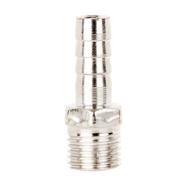 Перехідник виготовлений з хромованої сталі, він міцний та зносостійкий. Для додаткової фіксації з'єднання "ялинка" краще використовувати хомут поверх шланга.