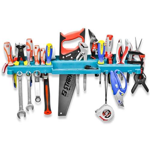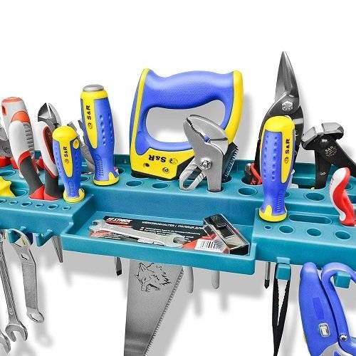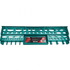 Stark 61 см – полиця для розміщення інструменту в гаражі, в майстерні, в коморі та ін. Полиця надійно кріпиться на стіну та витримує велику кількість ручного інструменту. Завдяки безлічі отворів різного діаметру кожен інструмент на своєму місці. Для викруток вузькі отвори шарнірно-губцевий інструмент можна розмістити в ширших отворах, а ключі повісити на гачки. Для дрібних деталей або кріпильних елементів передбачено спеціальний осередок. Завдяки полиці Stark 61 см можна упорядкувати весь інструмент, який зберігатиметься завжди під рукою.