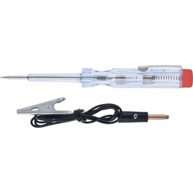 _x000D__x000D_Пробник автомобільний має металевий корпус, контактну гостру голку з одного боку, і зажим «крокодил» з іншого._x000D__x000D_Інструмент використовується для індикації напруги постійного струму.