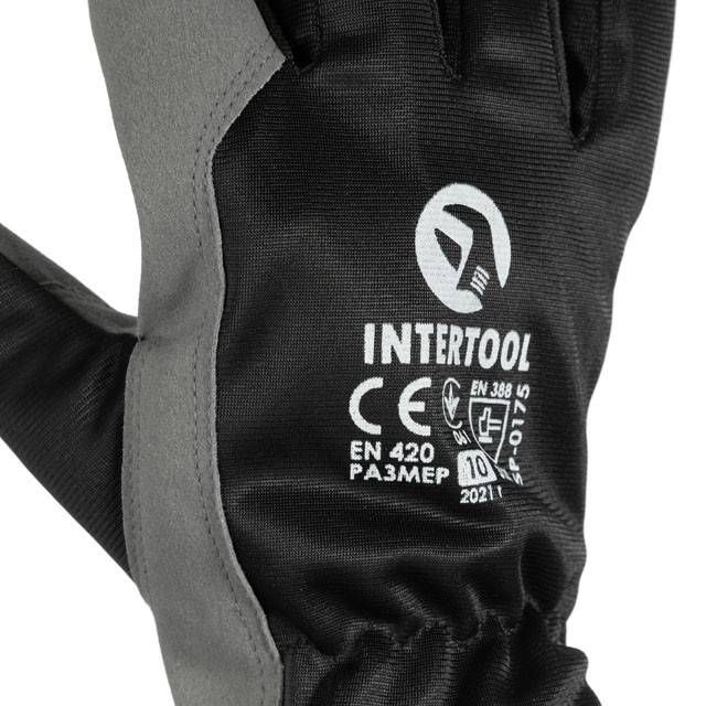 Рукавичка шкіряна, комбінована, 10", з високоякісної еко-шкіри і поліестерової тканини INTERTOOL SP-0175