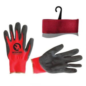 Рукавичка трикотажна синтетична, червона, покрита чорним пористим нітрилом на долоні 10" INTERTOOL SP-0127
