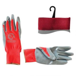 Долоні рукавиць вкриті сірим нітрилом для більш стійкого захисту рук від забруднень і механічних пошкоджень. При цьому рукавиці не сковують рухи пальців. Мають в'язаний манжет для фіксації на зап'ясті проти потрапляння всередину пилу і дрібних частинок.