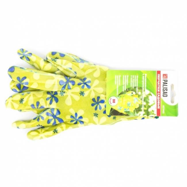 Рукавички садові з поліестру з нітриловою обливою, зелені, М, PALISAD