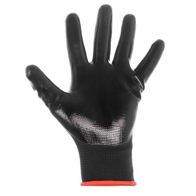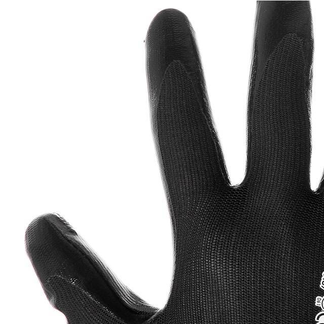 Покриття на долоні – чорний нітрил для стійкішого захисту рук від забруднень та механічних пошкоджень. При цьому рукавички дуже еластичні та не сковують рухів пальців. Стійкі до стирання та мають тривалий термін експлуатації.