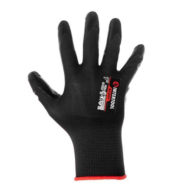 Рукавички трикотажні, синтетичні з гладким нітриловим покриттям 10" STORM INTERTOOL SP-0188