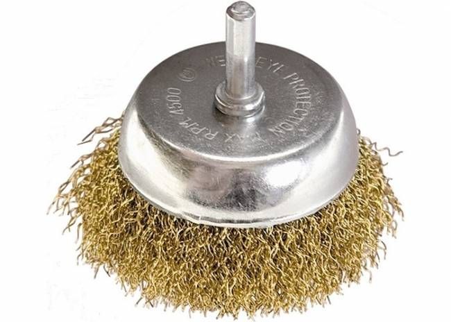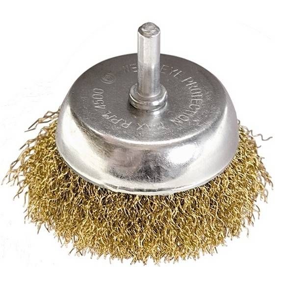 Щітка "чашка" зі шпилькою для дриля 75 мм, латунний кручений дріт, MTX
