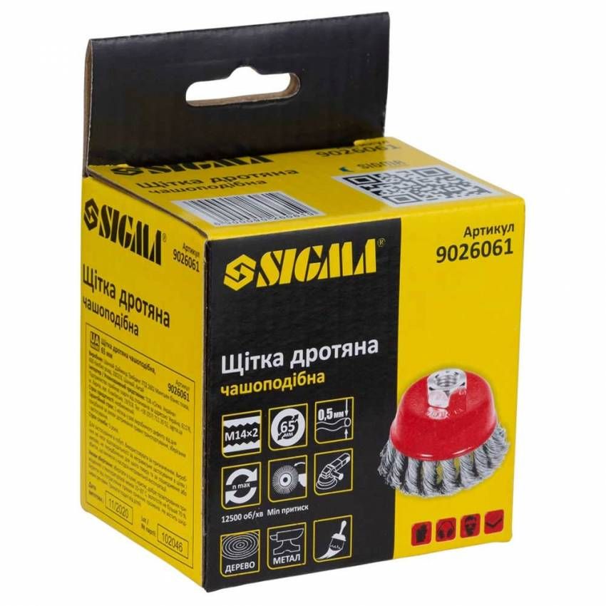 Щітка дротяна чашеподібна Ø65мм М14×2мм (сталева кручена) Sigma (9026061)