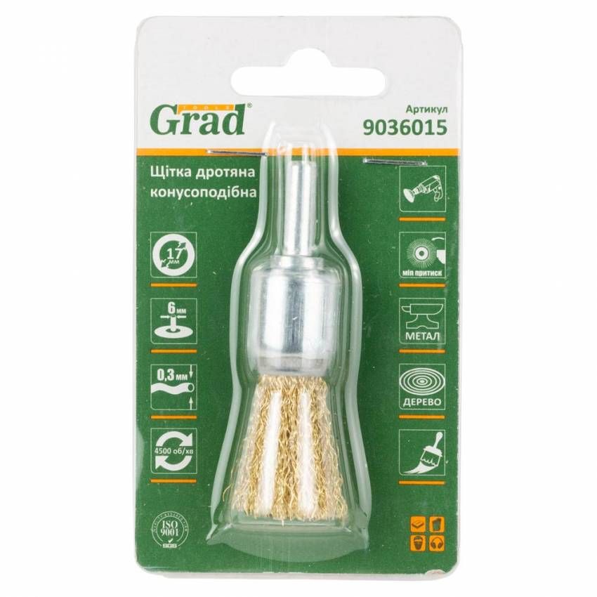 Щітка дротяна конусоподібна Ø17мм хвостовик Ø6мм (латунированная) GRAD (9036015)