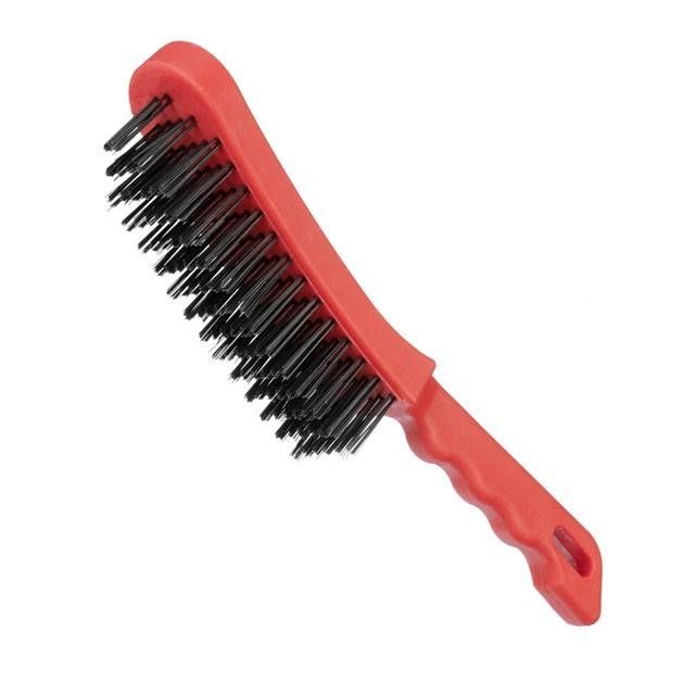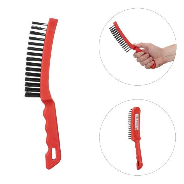Щітка виготовлена зі сталевого високоякісного дроту, розміщеного в 6 рядів. Ручка виготовлена із пластику, її зручно тримати та керувати процесом зачищання. Закруглена передня частина для доступу до важкодоступних місць.