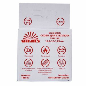 Скоби для степлера тип-140 12 × 1,2 мм 1000 шт. Vitals використовуються з будівельним степлером та призначені для кріплення різних матеріалів до поверхонь з м'яких та твердих порід дерева, Двп, Дсп, пластику, гіпсокартону та ін.