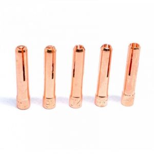 Цанга для пальника WP-9/20 Welding Dragon Довжина - 25 мм Матеріал - спец. сплав на мідній основі Цанга є расходником до Tig пальнику, її функція - зафіксувати електрод в пальнику і забезпечити передачу на нього зварювального струму. Конструктивно цанга - це трубка циліндричної форми з осьовими прорізами, які утворюють затискні кулачки. Саме затискання електрода забезпечується додатком до його зовнішньої поверхні осьового зусилля. Цанга вставляється в корпус цанги і після того, як накручена каппа (спеціальний ковпачок) утворюється надійне кріплення для вольфрамового електрода. Розмір цанги підбирається під діаметр електрода, який використовується. Цанга сумісна з пальниками Матеріал - спец. сплав на мідній основі Цанга є расходником до Tig пальнику, її функція - зафіксувати електрод в пальнику і забезпечити передачу на нього зварювального струму. Конструктивно цанга - це трубка циліндричної форми з осьовими прорізами, які утворюють затискні кулачки. Саме затискання електрода забезпечується додатком до його зовнішньої поверхні осьового зусилля. Цанга вставляється в корпус цанги і після того, як накручена каппа (спеціальний ковпачок) утворюється надійне кріплення для вольфрамового електрода. Розмір цанги підбирається під діаметр електрода, який використовується. Цанга сумісна з пальниками WP-9/20 різних модифікацій, а також для використання в оригінальних пальниках таких відомих торгових марок як Abitig 9/20 Grip, TBi-SR-P 9/20, а також їхніх аналогах. Цанга Діаметр електрода, мм 702.0250 1,0 702.0251 1,6 702.0255 2,0 702.0252 2,4 702.0253 3,2