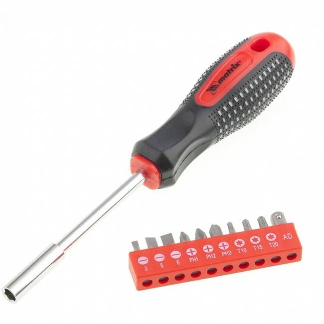 Викрутка Fusion з набором біт, 10 шт, CrV, трикомпонентна рукоятка "anti slip", MTX