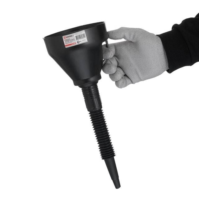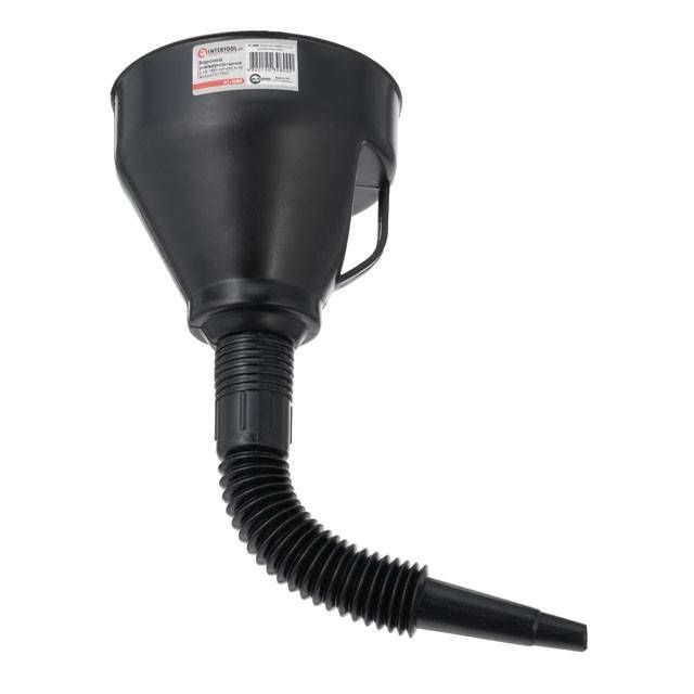 Знімний гофрований носик забезпечує зручне заливання рідин навіть у важкодоступні заливні горловини. Також він дозволяє тримати лійку під будь-яким потрібним кутом, що неможливо при використанні воронок з прямим жорстким носиком.