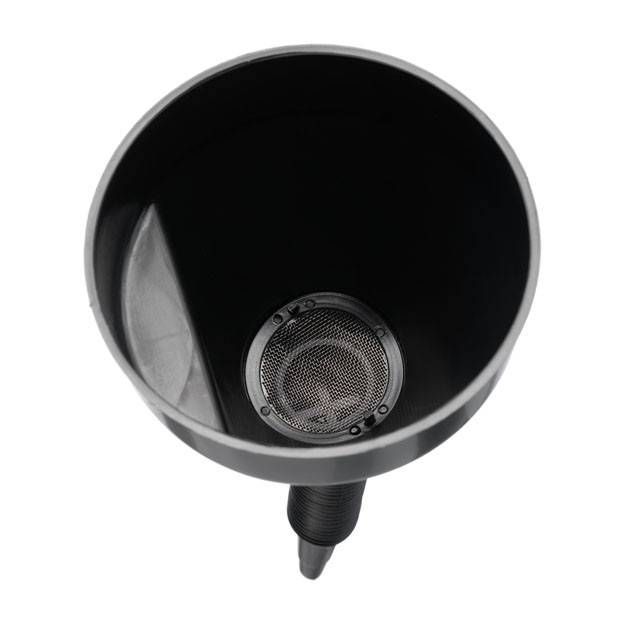 У конструкції лійки передбачений фільтр грубого очищення, виконаний у вигляді сітки. Він захищає від потрапляння небажаних часток в систему під час заливання. За необхідності, фільтр легко знімається і миється. Завдяки розбірній конструкції воронку зручно зберігати і перевозити.