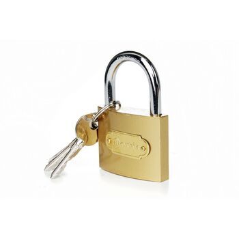 Замок навісний жовтий - (48x38x17мм), хрестоподібний ключ AURORA